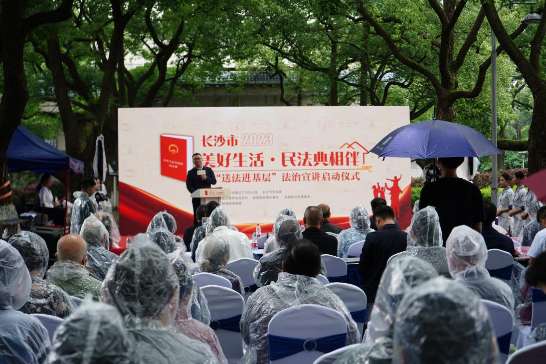 近日,长沙市守法普法工作办公室、长沙市司法局主办的长沙市2023年“美好生活·民法典相伴”主题宣传暨“送法进基层”法治宣讲启动仪式在芙蓉区韭菜园街道汤家岭社区举行