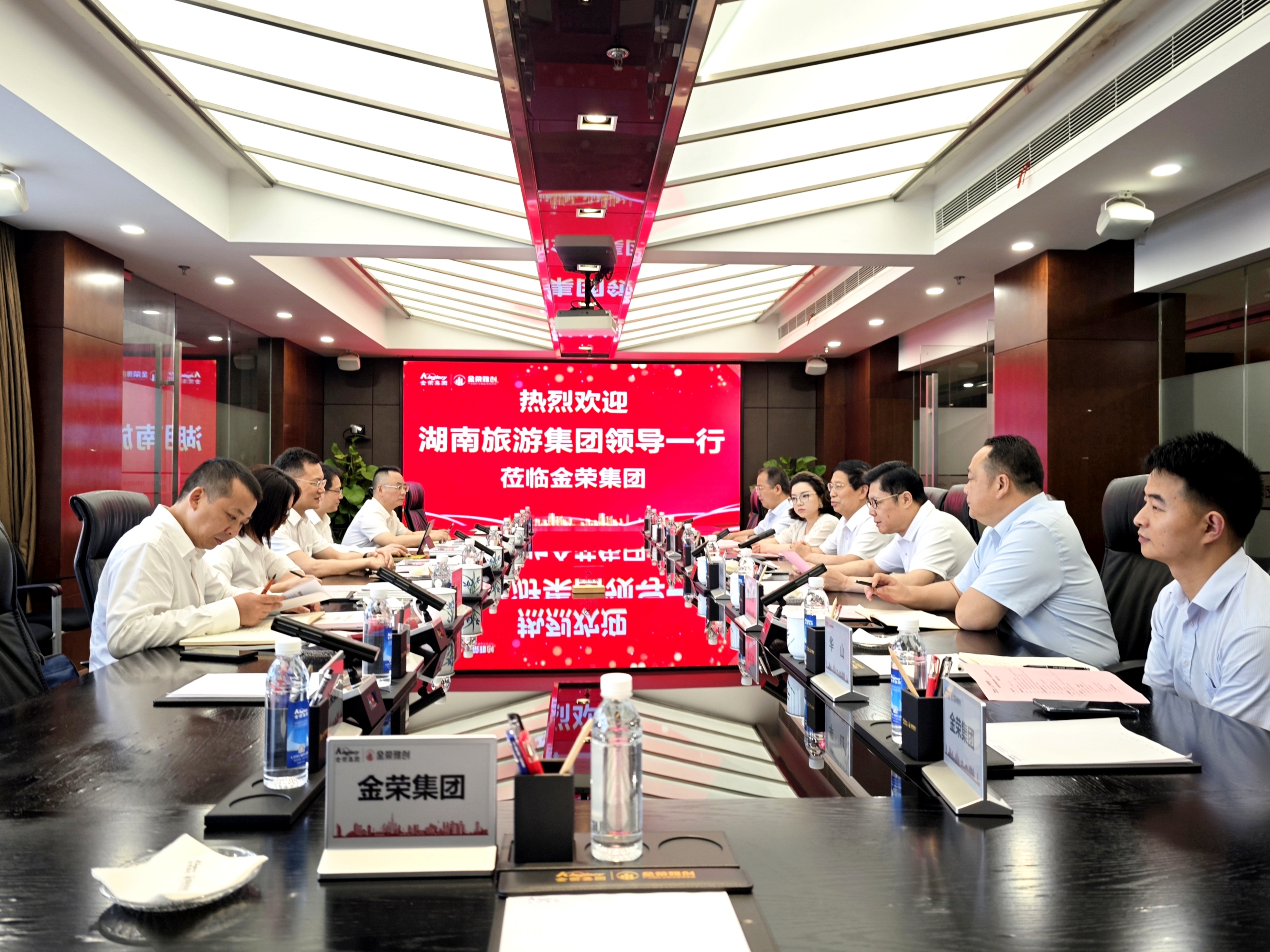 5月30日,旅游集团党委书记、董事长杨宏伟带队赴新华社湖南分社座谈交流,新华社湖南分社党组书记、社长陈俊热情接洽。